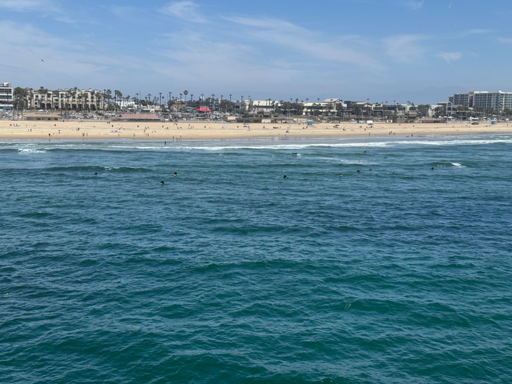 We visited Sunset Beach and Huntington Beach, caught sight of surfers riding the waves where the U.S. Open of Surfing is held, and enjoyed a delicious lunch with ocean views. It was a bit chilly so thank goodness for jackets.