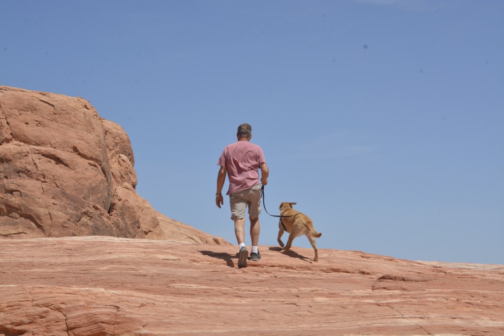 Located about an hour from Las Vegas, this park is well worth the visit if you have the time. After paying the entry fee, we headed to the visitor center to grab maps and hike info. It was very busy—the parking lot was full—so Sam stayed in the truck with Annie (dogs are allowed on the trails!) while I dashed inside. I didn’t linger, but picked up a trail map to get us going.