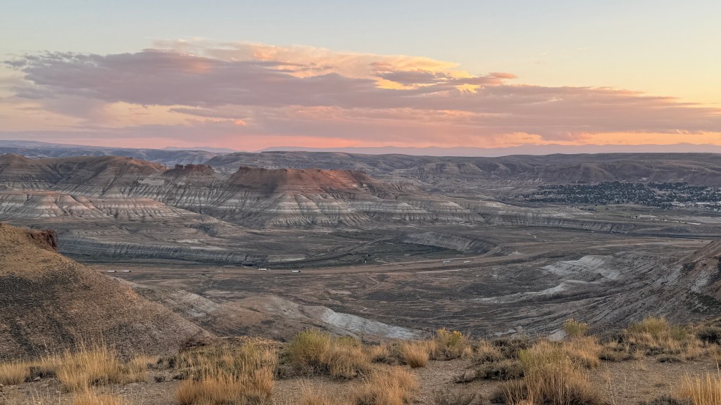 After leaving the wide-open spaces of Wyoming, we found ourselves perched on a beautiful dispersed camping spot on a ridge overlooking Green River, WY. There’s something special about these off-the-grid stays — no hookups, no neighbors, and the quiet hum of nature. We spent our evenings watching the sunset and the mornings, sunrise, grateful for the simplicity and peace that come with boondocking in a place like this.