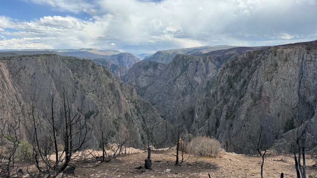 Once we crossed into Colorado, we made our way to Montrose, where we scored a riverfront campsite that felt like a perfect home base. Just outside of town sits a national park — Black Canyon of the Gunnison. The South Rim entrance was finally open again after this year’s wildfire closures, and it was amazing to see. The sheer cliffs and dramatic drop-offs never fail to humble you — nature’s version of awe at its finest.
